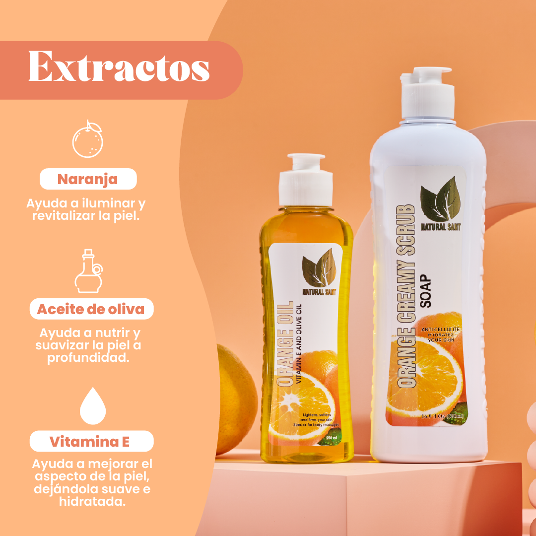 Aceite corporal de naranja: el aceite corporal de naranja es especial para masajes corporales relajantes, humecta la piel y contribuye a su cuidado natural gracias a las propiedades antioxidantes de sus extractos.