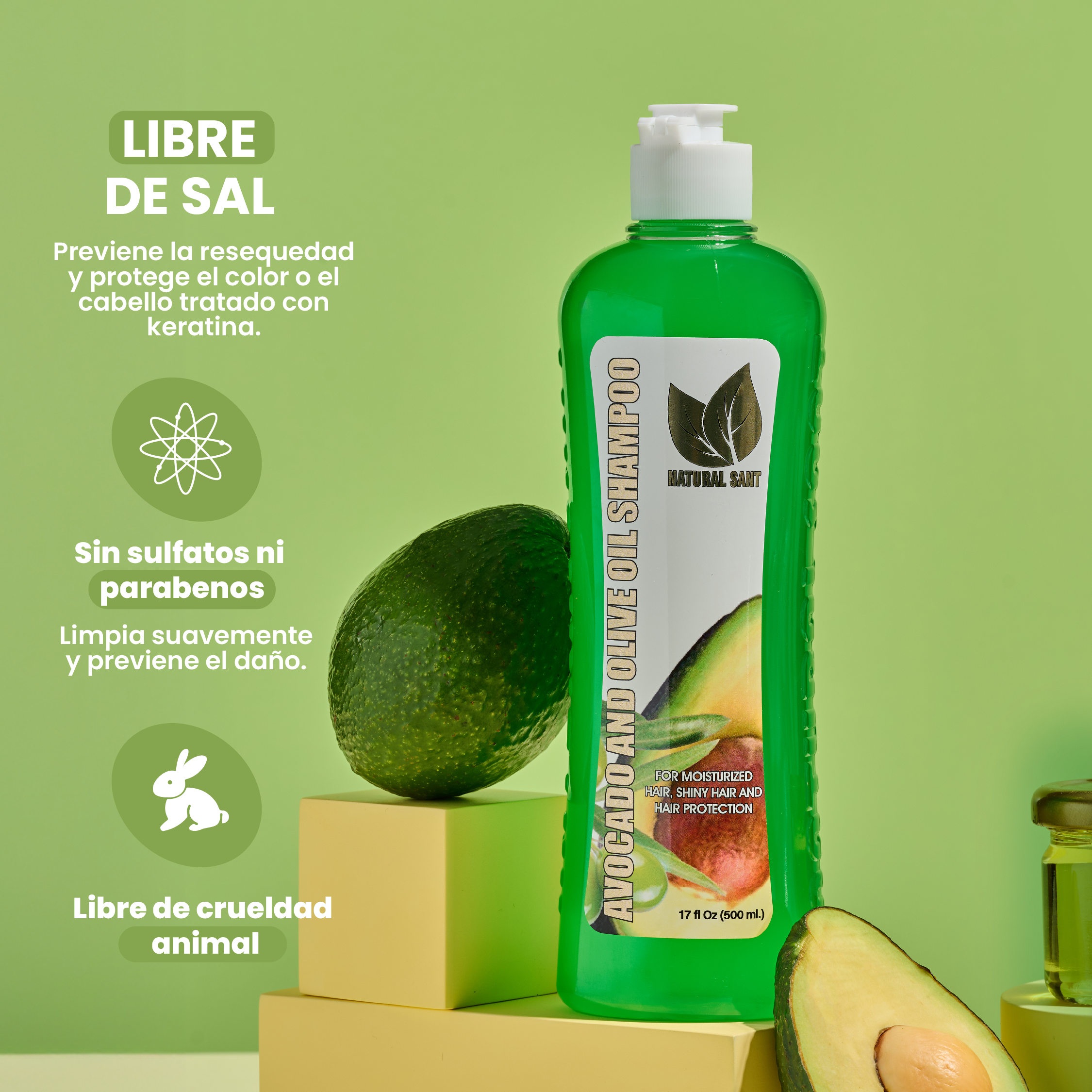 Shampoo: el shampoo de aguacate y aceite de oliva, ayuda a evitar el cabello seco, maltratado y quebradizo, además aporta brillo y facilita el manejo. Las grasas que posee le proporcionan al cabello una hidratación intensa, fortaleciendo desde la raíz.