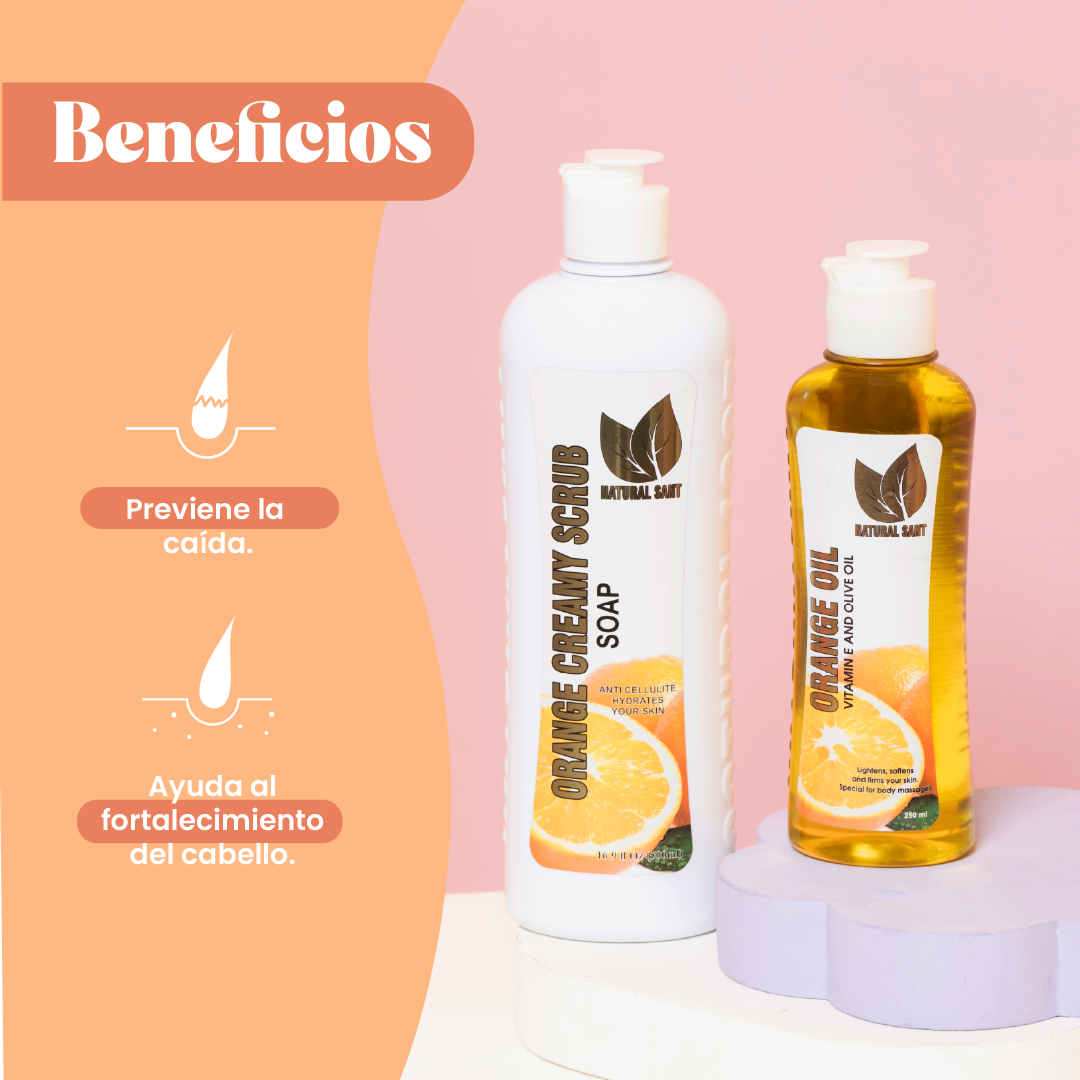 Jabón cremoso exfoliante de naranja: el jabón cremoso exfoliante de naranja tiene el beneficio de limpiar, humectar, hidratar y suavizar mejorando el aspecto de la piel del cuerpo y del rostro, ya que es fabricado con gránulos de cereal microprocesados que no lastiman ni irritan.