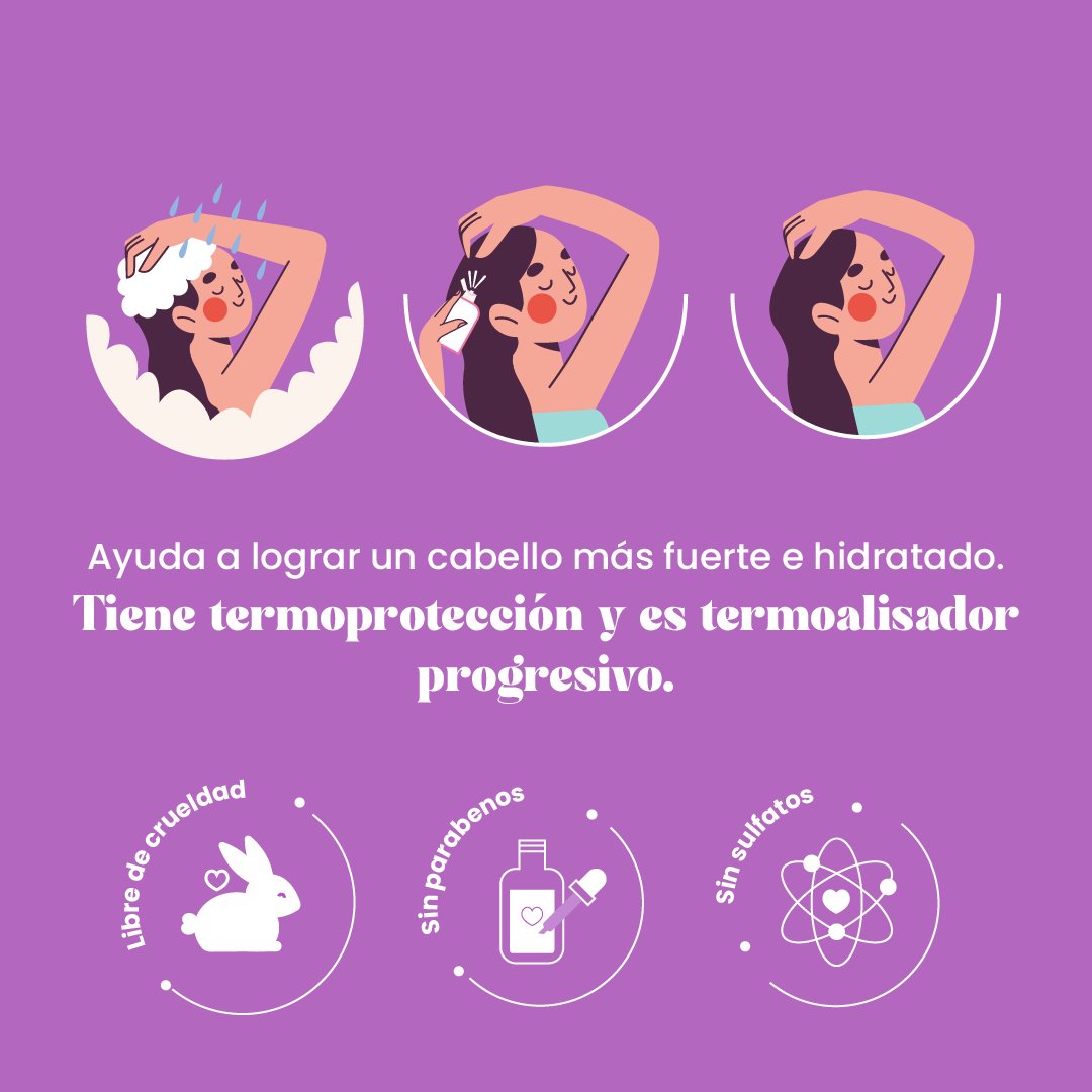 Tratamiento: el tratamiento Lisovital aporta un alisado progresivo que contribuye al mantenimiento de un liso perfecto cuenta con las propiedades naturales de los extractos de cebolla, romero y biotina que ayudan a nutrir el cabello maltratado y le devuelve su brillo natural. Ayuda a disminuir la onda no deseada del cabello, lo protege de la sal del mar y los químicos de las piscinas, además es ideal para el mantenimiento de las keratinas y alisados. Tiene termoprotección.