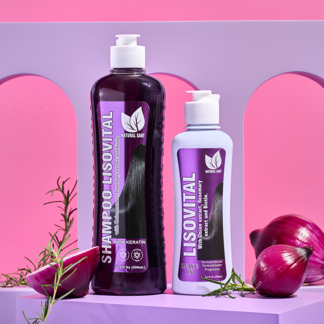 Shampoo: el shampoo Lisovital es especial para el cuidado del cabello seco y maltratado. su contenido de extractos de cebolla y romero ayudan al fortalecimiento de las hebras del cabello, ayudan a estimular su crecimiento y lo revitalizan, favoreciendo la obtención del brillo natural. Su contenido de keratina y biotina favorecen al manejo de cabellos esponjosos y facilitan el peinado.