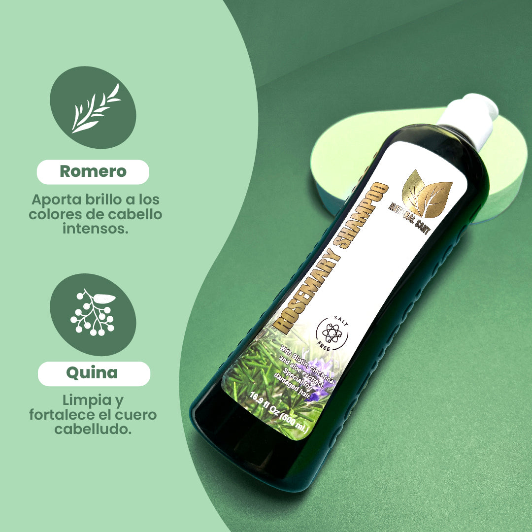 Shampoo: el shampoo de romero y quina es especial para el cuidado del cabello oscuro, seco y maltratado. Su contenido de extractos de romero, quina ayudan al fortalecimiento de las hebras del cabello, estimulan su crecimiento y revitalización, favoreciendo la obtención del brillo natural.